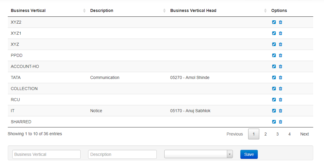 - To create Business Vertical you get option at the bottom of the page