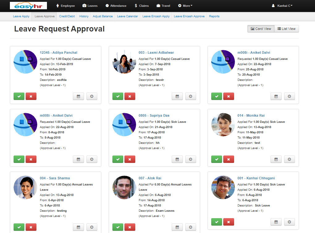 Home / Leaves / Leaves – ApproveLeaves – Approve 1734 views Less than a minute 4 You can approve leave by clicking on tick mark or reject leave by clicking on cross mark of the employees.