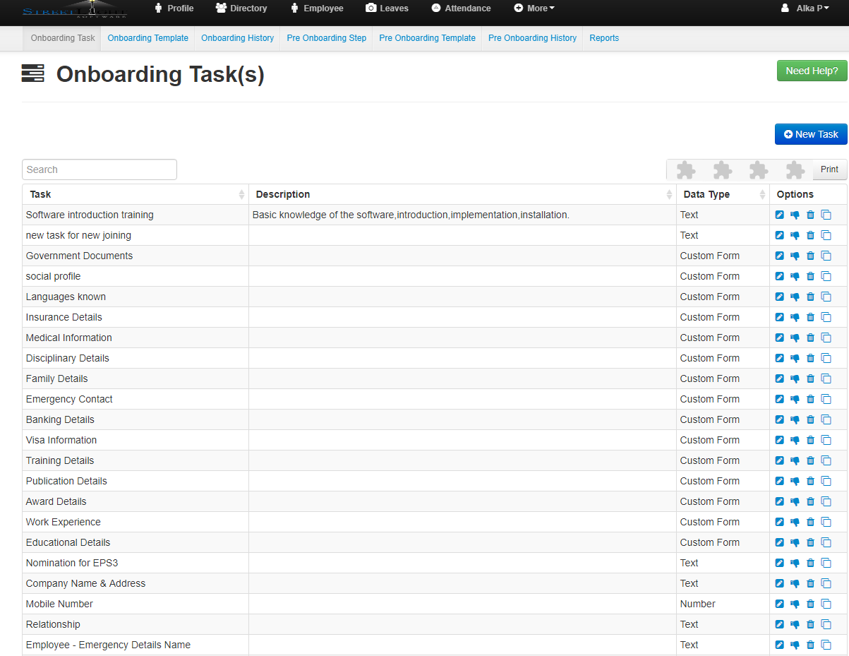 Home / On Boarding / On-boarding – TaskOn-boarding – Task 1742 views Less than a minute 0 Click on On-boarding task. Here you can see the Task,Description,Data Type and Options. To create task click on the New Task button. Fill the above details and click on the Save button.
