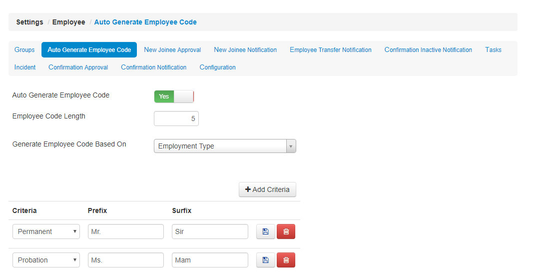 - For this you have to fill the some criteria details that you have in your organization for an employee code.