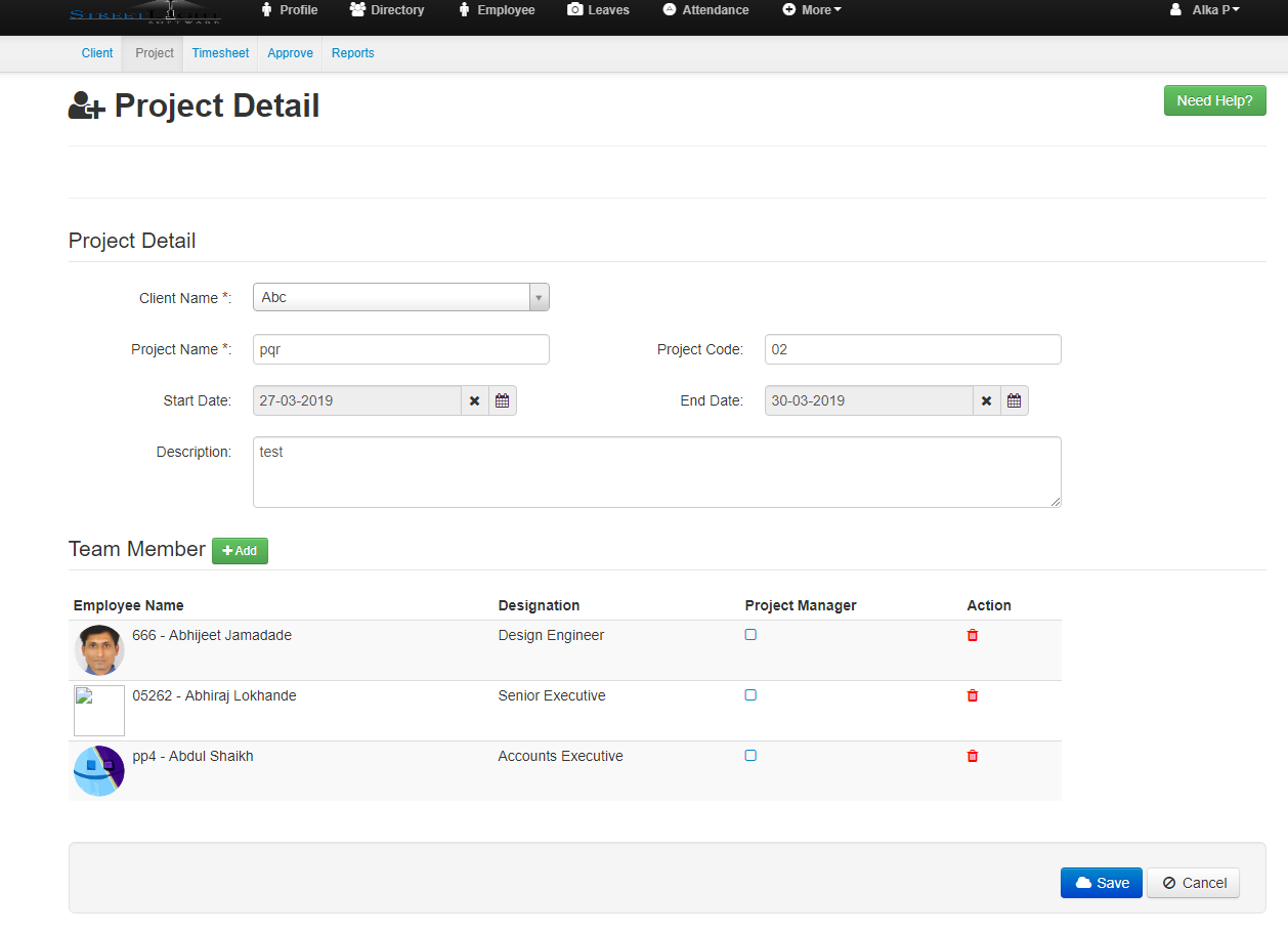 - You can also add team members, you need to just click on ‘+ Add’ button and click on checkbox after that click on ‘cross icon’ and click on Save button.